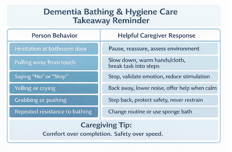 Fear during bathing is not a failure of the person or the caregiver. It is the brain’s response to confusion, vulnerability, and sensory overload. When caregivers recognize this, they can respond with patience instead of pressure.